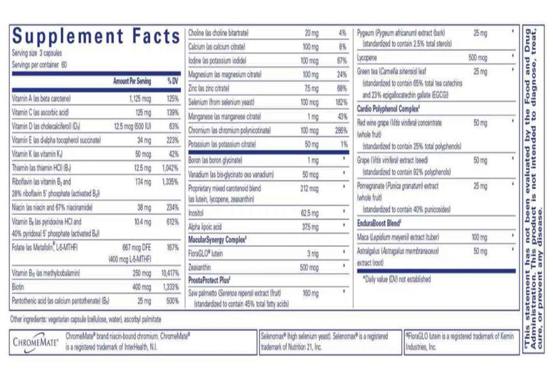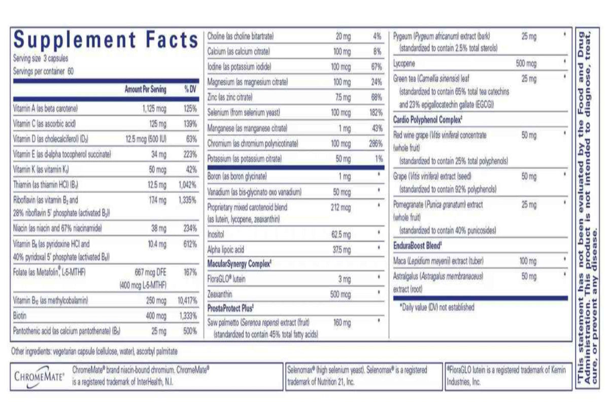 Multivitamin/mineral complex for men over 40 to support prostate health, overall energy, endurance and stamina.