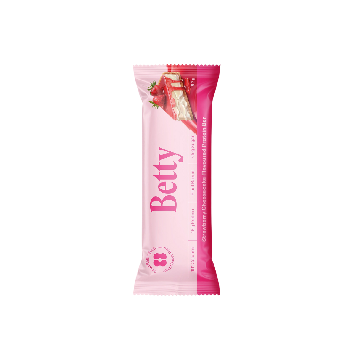 Strawberry Cheesecake Betty Bar packs 16 grams of protein per serve, is an excellent source of fibre, good source of zinc, and contains 500 million CFU (colony forming units) of probiotics for gut health. With a modest 195 calories and only 4.5g of sugar, this delicious bar ticks all the boxes.